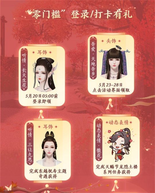 相伴江湖,刀刀必做的七件小事甜蜜献礼!即日起至6月5日活动期间,少侠每日登录游戏解锁一个专属亲密任务,在当日任务解锁后完成该任务即可点击左方获得对应礼包,礼包将直接发放至少侠邮箱,少侠们请注意查收~