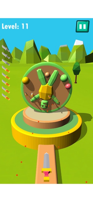 1、操作的方法很简单,长按屏幕就会让飞刀快速的飞出去,如果你按的时间太短,飞到了飞行的距离就不够;